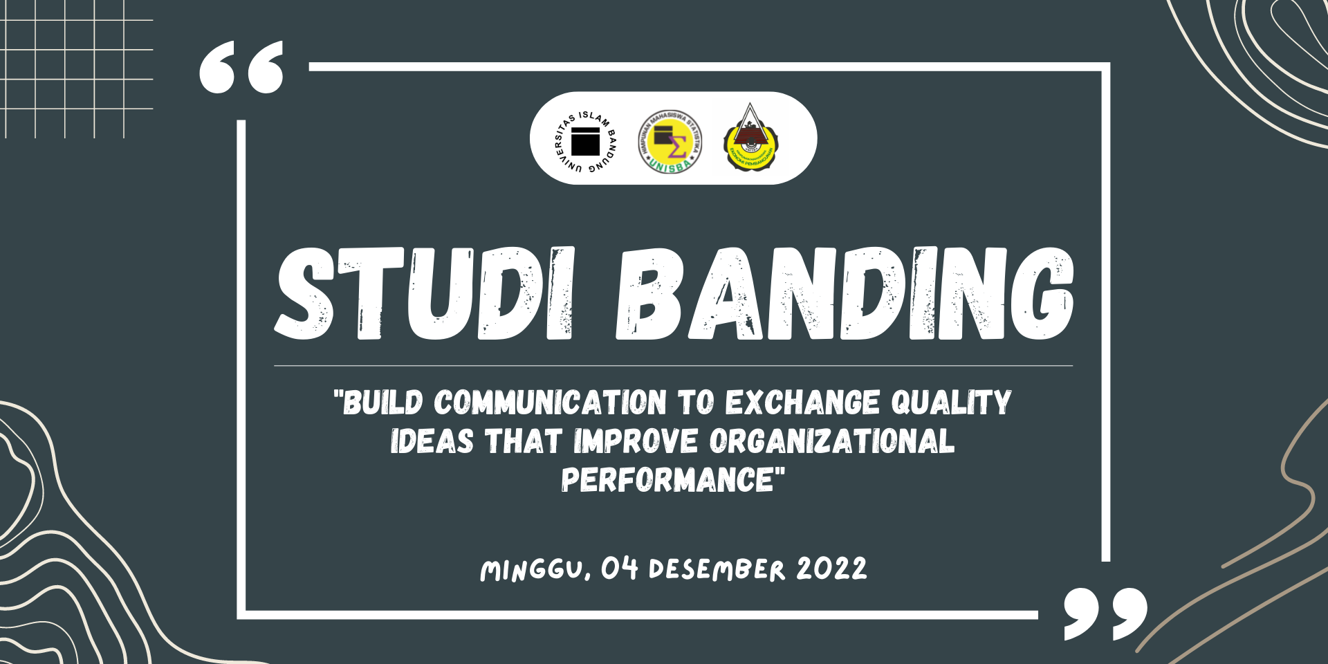 Studi Banding atau yang biasa dikenal dengan STUBAN merupakan salah satu aktivitas kerja bidang Hubungan Masyarakat Himpunan Mahasiswa Statistika Universitas Islam Bandung. Kegiatan ini dilaksanakan bersama Himpunan Mahasiswa Ekonomi Pembangunan Unisba pada hari Minggu, 4 Desember 2022 secara offline di Aula Pascasarjana Unisba dan Gedung FMIPA Unisba. Studi Banding kali ini mengusung tema “Build communication to exchange quality ideas that improve organizational performance”. Tujuan diadakannya Studi Banding ini sendiri adalah untuk memperkenalkan Himasta Unisba kepada organisasi lain, serta dapat memperluas jaringan dan mengevaluasi kinerja kepengurusan Himasta.