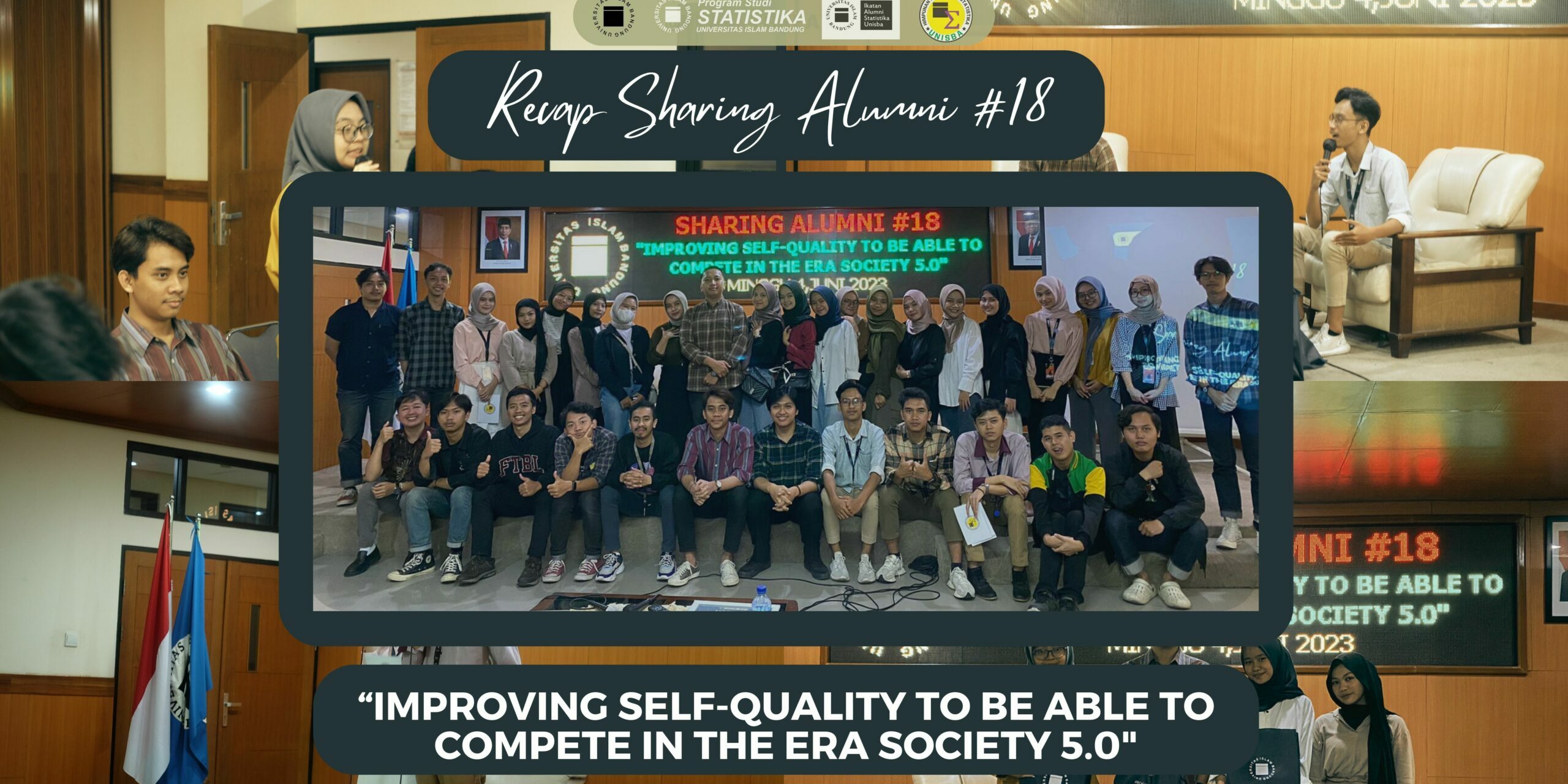 Sharing Alumni #18 telah dilaksanakan secara offline Aula Pascasarjana Universitas Islam Bandung pada hari Minggu, tanggal 4 Juni 2023. Pemateri pada kegiatan ini adalah kang Dilla Oktoriandi, S. Stat dengan dimoderatori oleh Muhammad Affan Irtiza Pramono serta Diva Sephira Dwi Lavanza dan Kariim Kurniawan Pamungkas Andawali Putra sebagai Master of Ceremony. Alhamdulillah acara dapat berjalan dengan lancar dan dihadiri oleh 38 partisipan. Antusias dari partisipan terlihat dimana, banyak yang mengajukan pertanyaan. Selain itu juga, partisipan mendapatkan ilmu yang bermanfaat, serta hadiah untuk penanya terbaik.