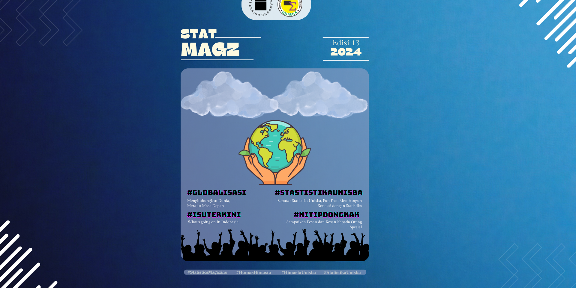 Dengan demikian, Himpunan Mahasiswa Statistika mengadakan salah satu aktivitas kerja dari bidang Hubungan Masyarakat yaitu Statistics Magazine yang bertujuan untuk memperkenalkan statistika kepada masyarakat. Edisi ke-13 ini mengusung tema yaitu “Statistics in the Era of Globalization: Implications for Economics, Social, and Politics.” Tema ini bertujuan untuk mengeksplorasi peran dan dampak statistika dalam bidang ekonomi, sosial, dan politik di era globalisasi serta bagaimana ia membantu kita menghadapi tantangan global.