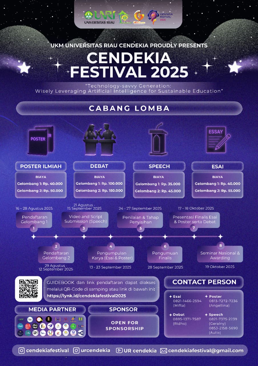 - Peserta Lomba Esai Cendekia Festival 2025 terbuka untuk mahasiswa/i aktif jenjang D3/D4/S1 dari perguruan tinggi negeri/swasta di seluruh Indonesia