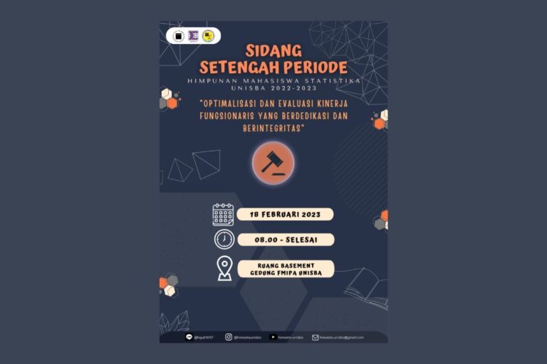 Sidang Setengah Periode (SSP) adalah program kerja dari Himpunan Mahasiswa Statistika Universitas Islam Bandung yang bertujuan untuk mengevaluasi dan melaporkan pertanggungjawaban kinerja pengurus Himasta berdasarkan program kerja dan aktivitas kerja yang terlaksana di setengah periode kepengurusan. Selain itu, SSP juga bertujuan untuk memberikan sarana menyampaikan aspirasi bagi mahasiswa aktif Statistika Unisba khususnya untuk kepengurusan Himasta.…