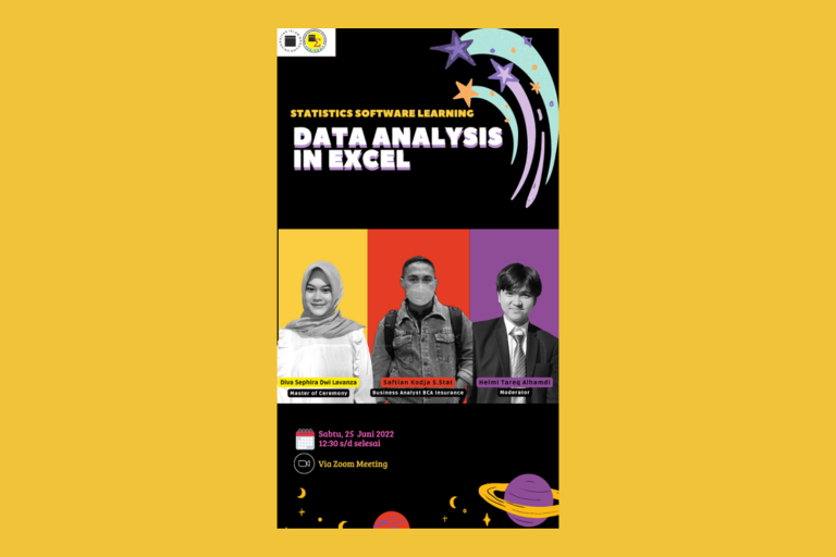 STATISTICS SOFTWARE LEARNING  Hai stastistician!  Statistics software learning #2 hadir untuk menemani waktu libur kalian dengan tema:  ” Data Analysis in Excel “   ? : Sabtu, 25 Juni 2022 ⏰ : 12.30 – selesai ? : Zoom Meeting   Requirements: Ms Excel   Pemateri: Saftian Kodja S.Stat   Link Zoom Meeting: https://unisba-ac-id.zoom.us/j/98236543680?pwd=WUQwaHZ1dEZ3T2x4TC9NbnlTdHAxUT09 Meeting ID:…